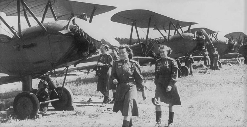 “Ночные ведьмы” на фоне своих самолётов. Фото из открытых источников.